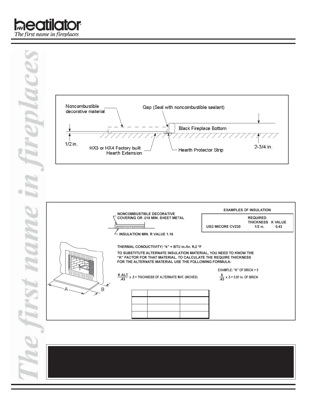 constructed hearth extension must be constructed from 1/2 in. MICORE CV230, or a material with an equivalent