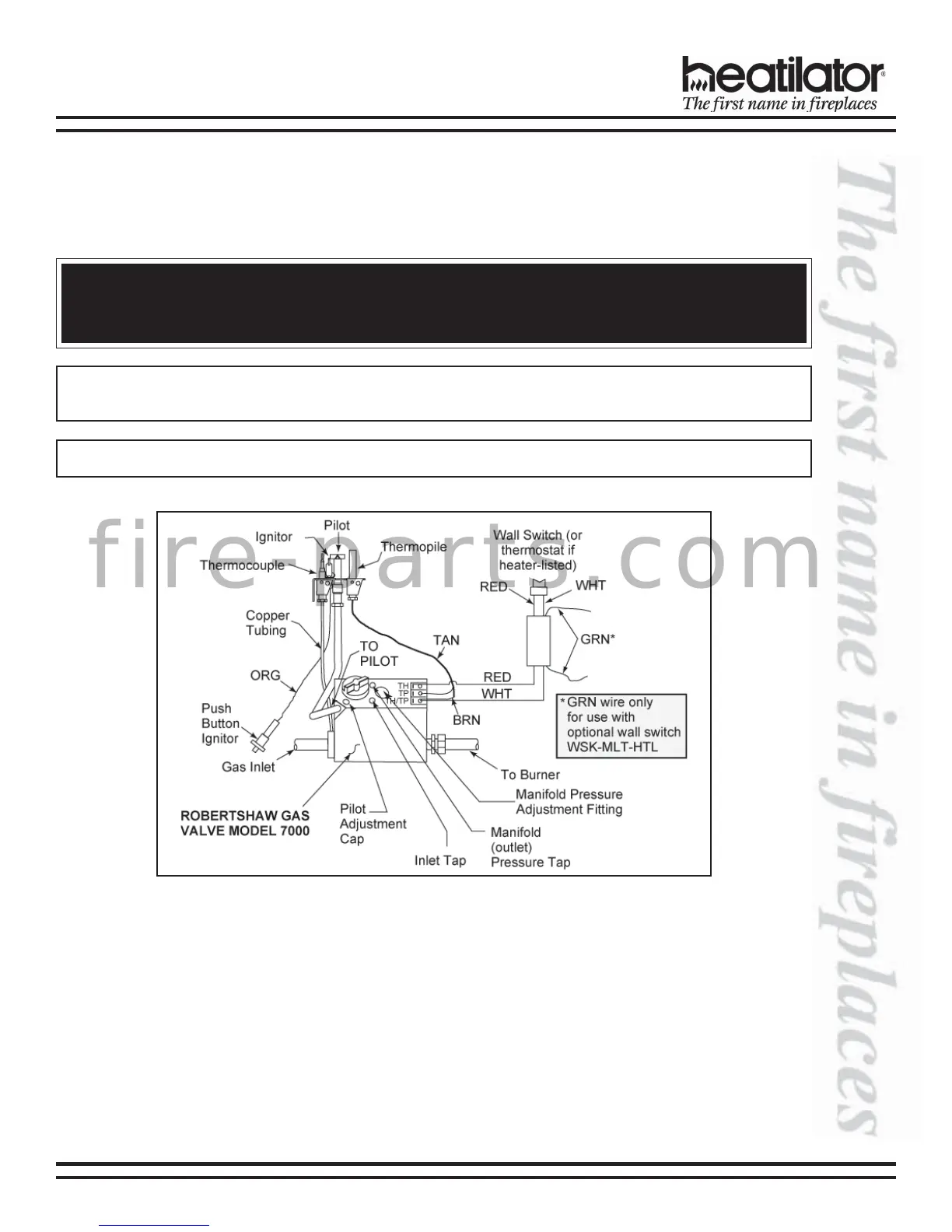 wall switch to a 110VAC supply will cause the appliance to malfunction and destroy the valve and thermopile.