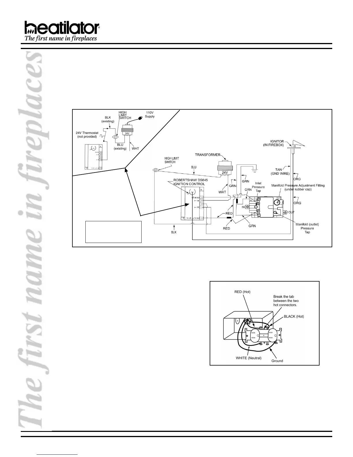 2) Only heater listed appliances may be connected to a thermostat. If connecting a 24V thermostat (not