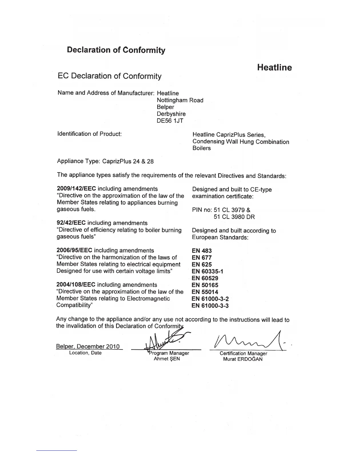 Heatline CaprizPlus 28 - Declaration of Conformity