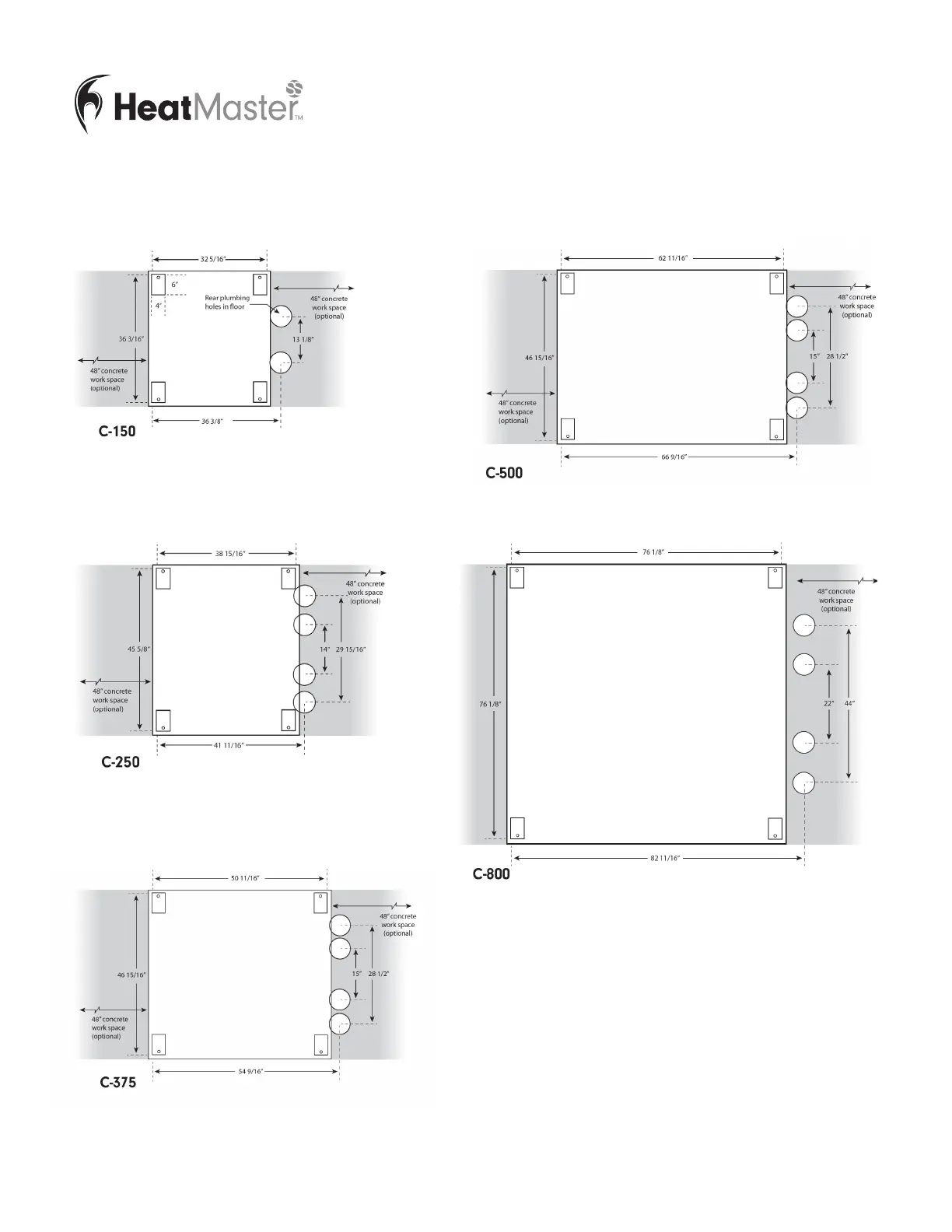 Heatmaster C-250 - UNIT SPECIFICATIONS AND COMPONENTS; Unit Footprints and Dimensions