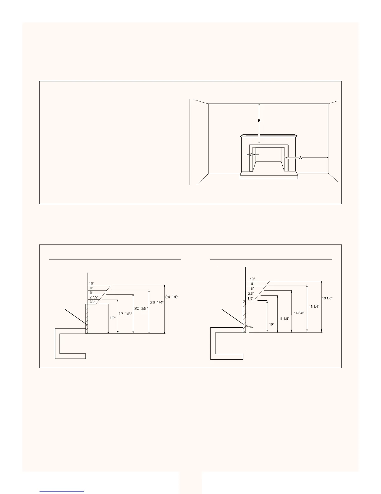 Minimum mantle clearance when unit is installed as a vent free appliance in a pre-existing fireplace.