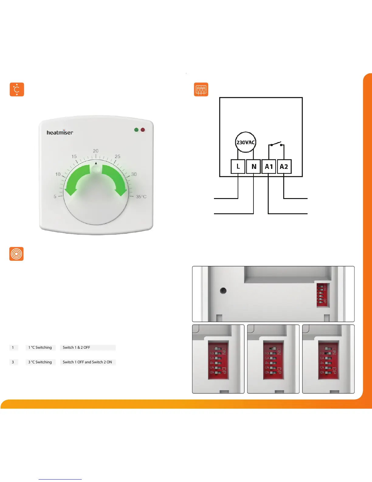 The Heatmiser DS1 oers 1, 2 and 3°C switching dierential.