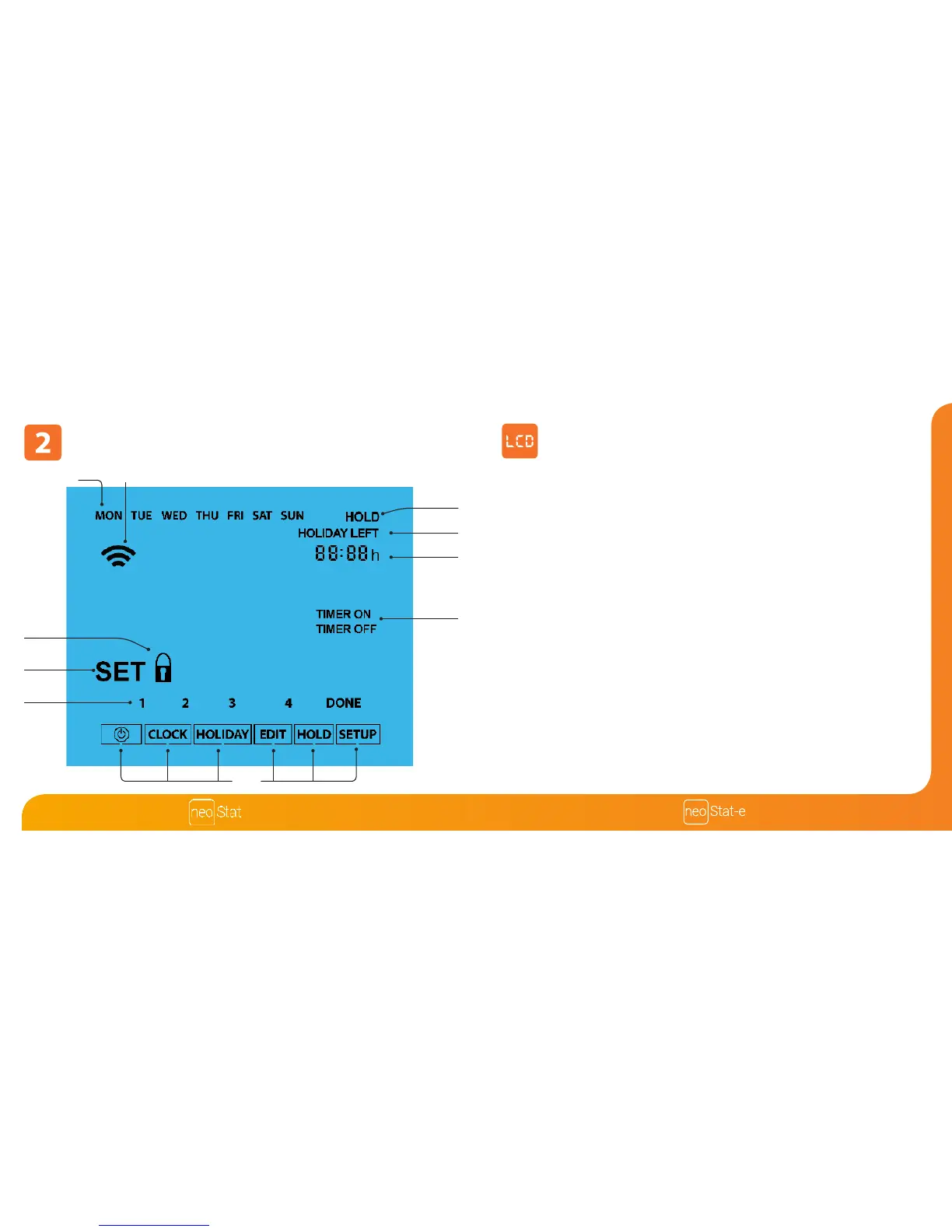 9. Holiday Left – Displayed when the thermostat is in holiday mode.