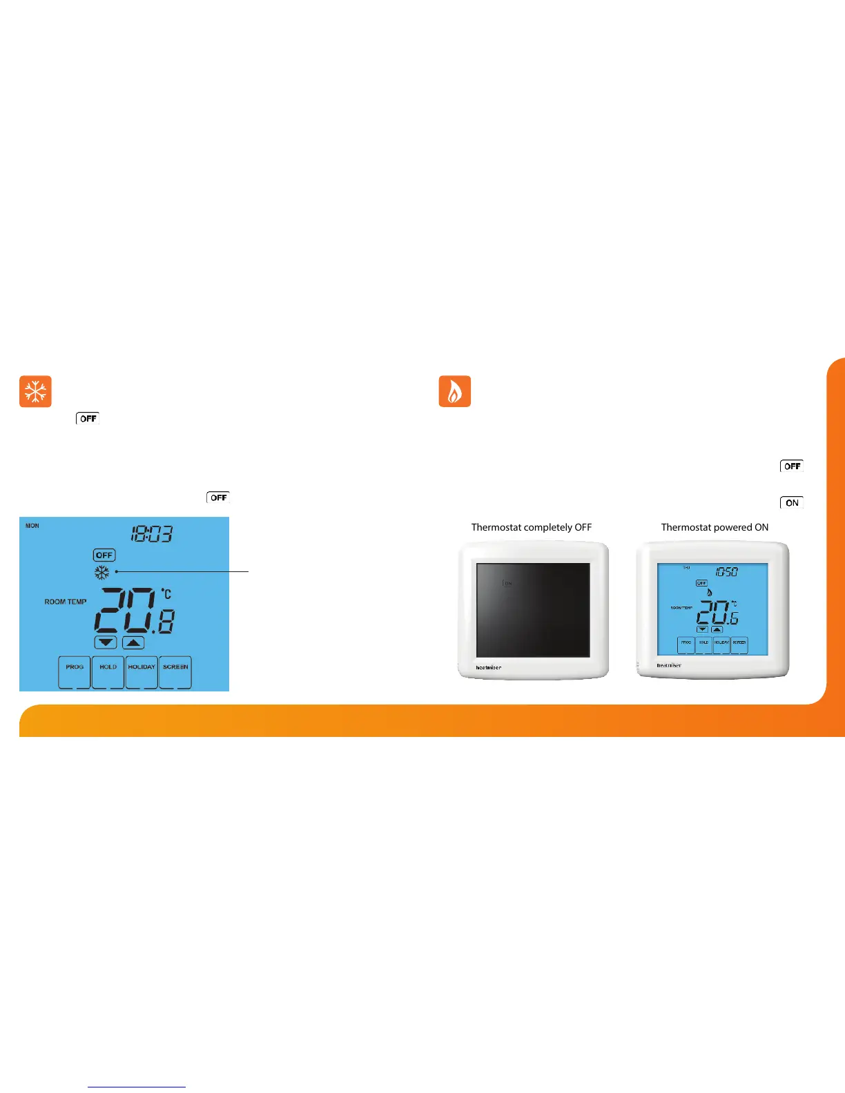 To turn the thermostat OFF completely, press and hold the OFF key .....................