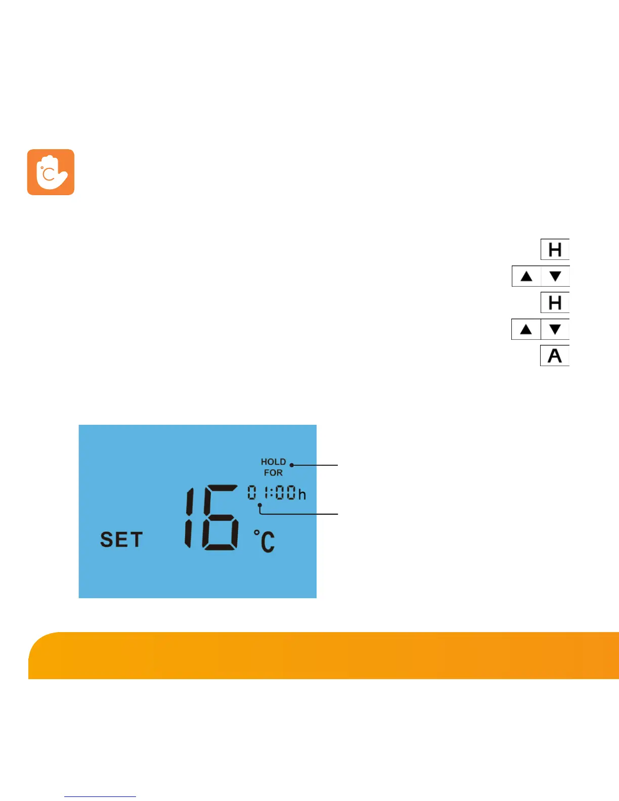 To cancel temperature hold, follow the same steps but reduce the Hold time to 00:00 hours.