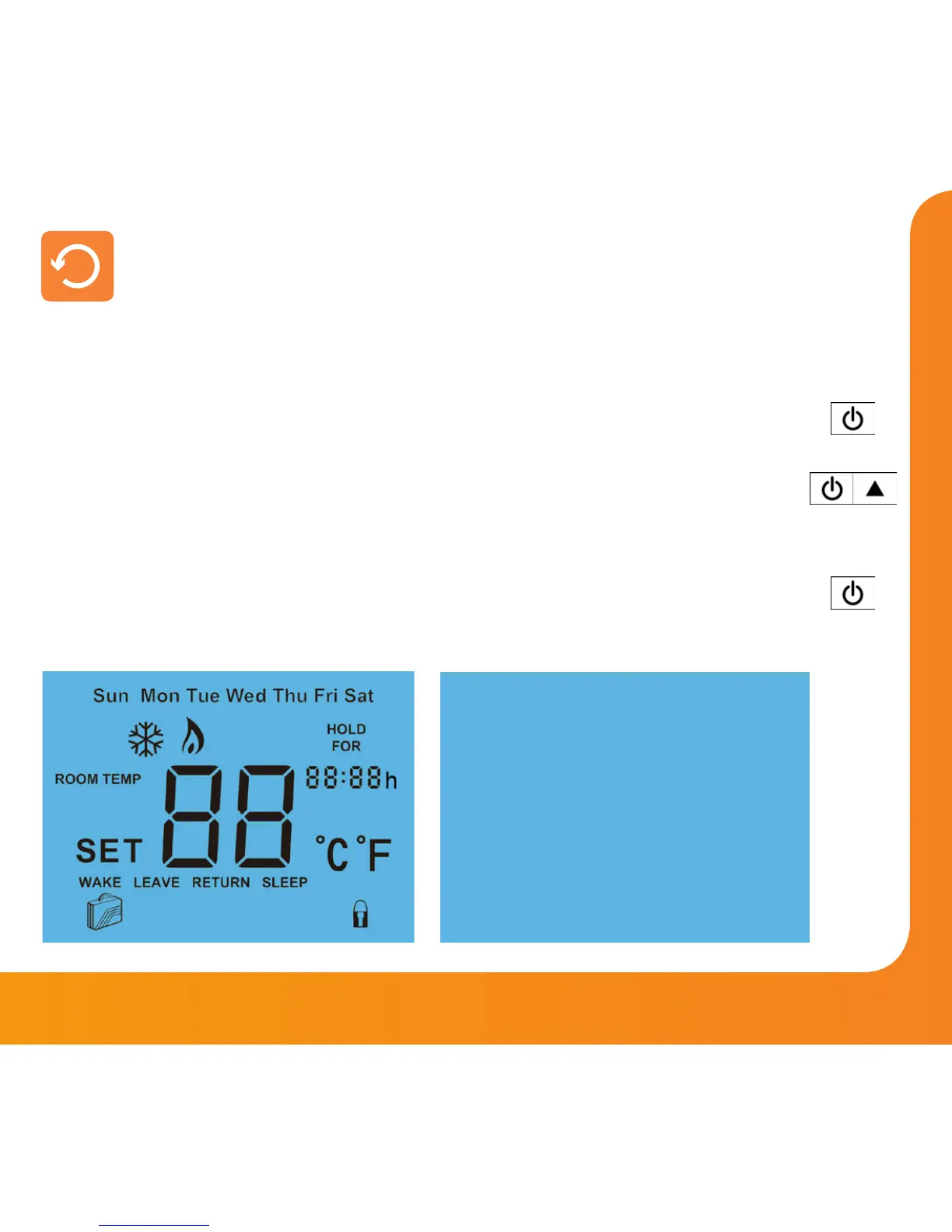 • Press the Power button once to turn the thermostat back ON .........................