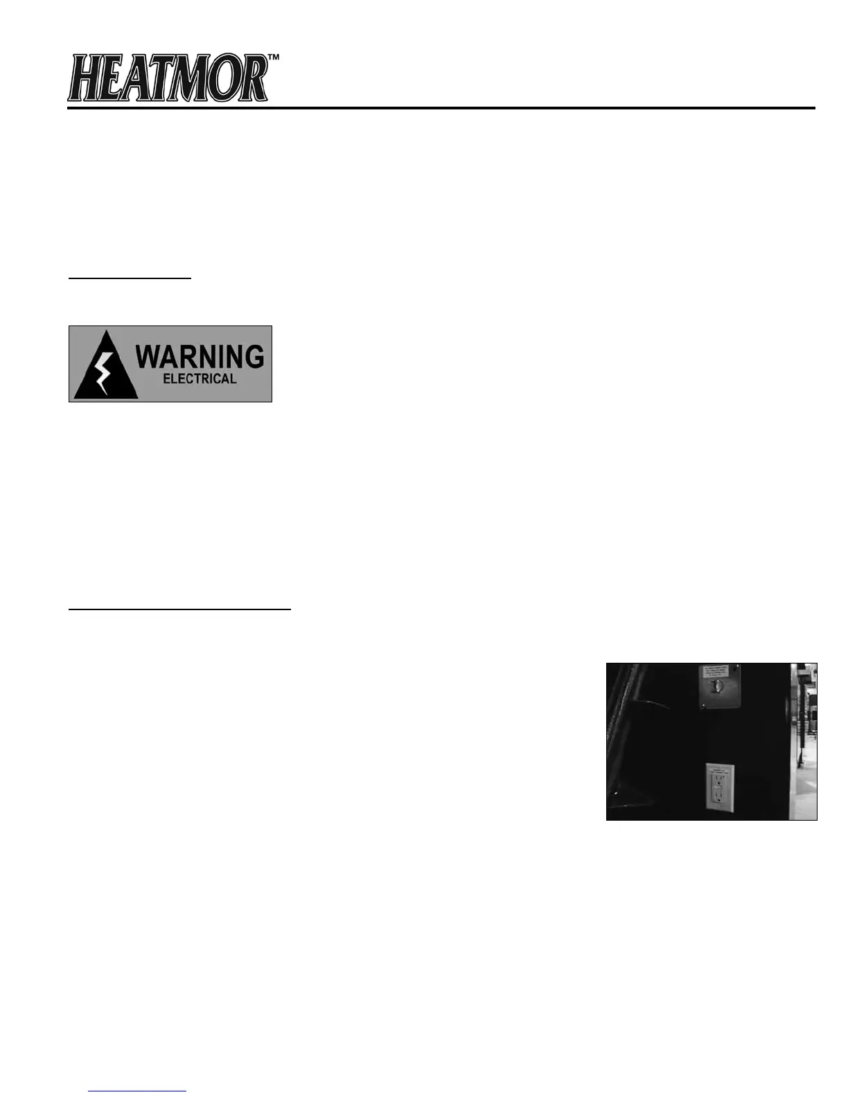 attachment of the main electrical power supply to the HEATMOR™ controls. Electrical outlets at the rear of the