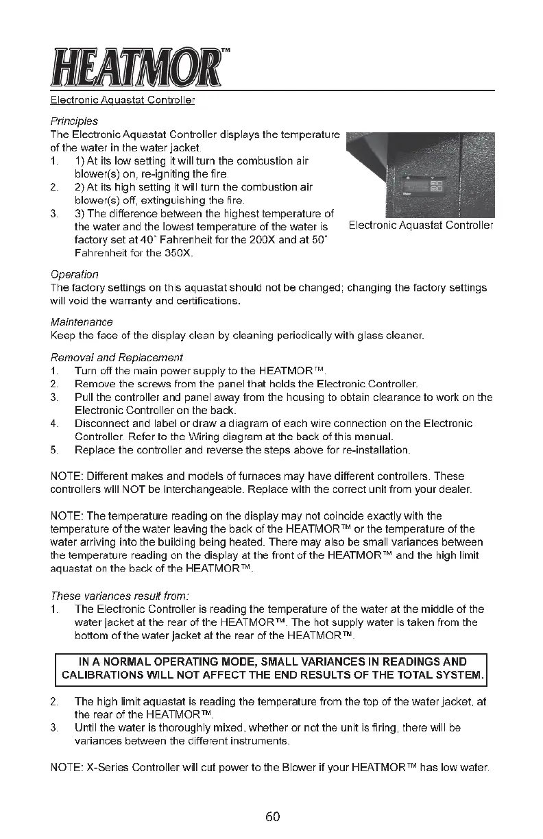Heatmor 200X - Electronic Aquastat Controller Operation and Service; Aquastat Controller Principles and Maintenance; Aquastat Controller Removal and Replacement