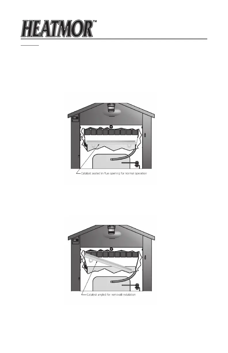 from the stove. The catalyst is wedged into the ue opening using gravity.