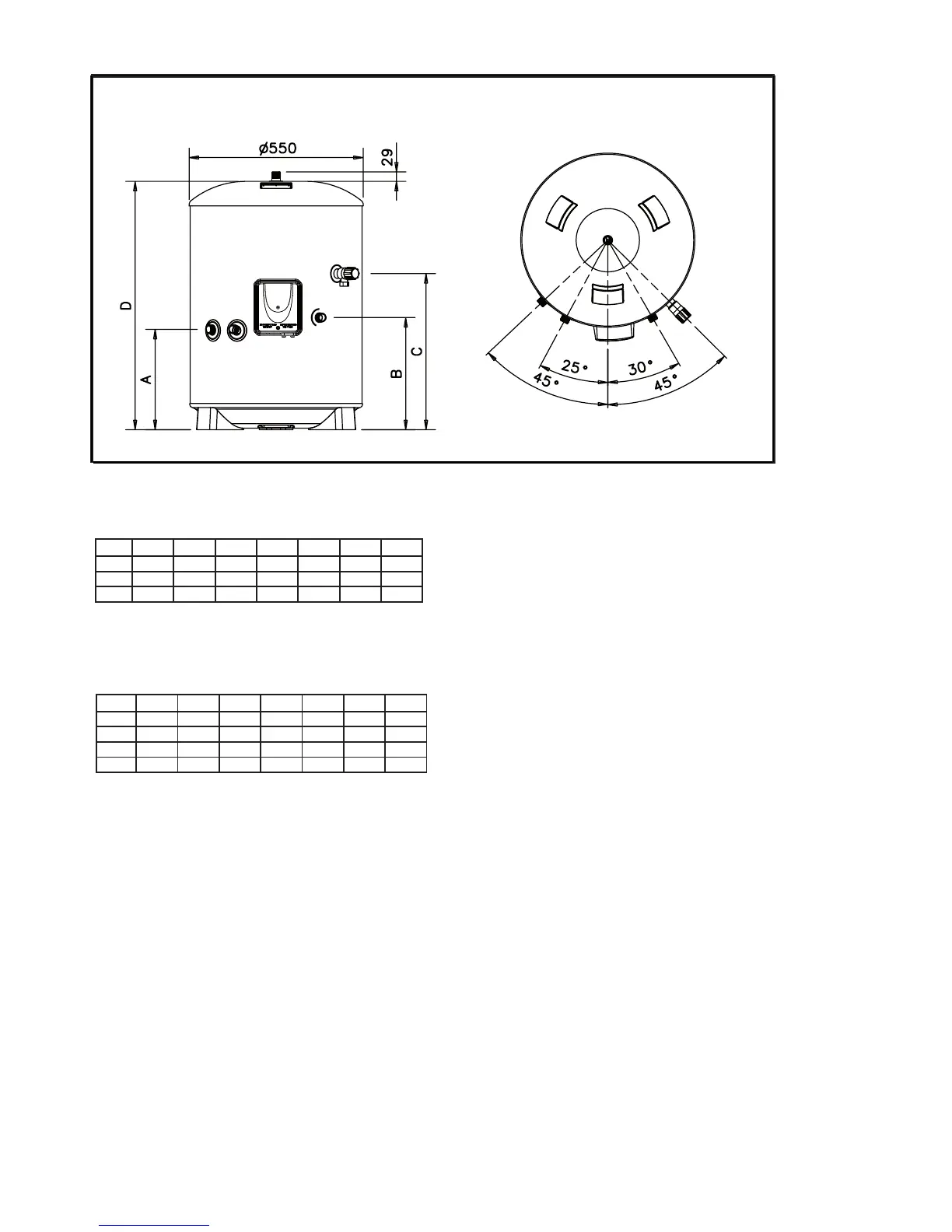Table 4: General dimensions table - Indirect