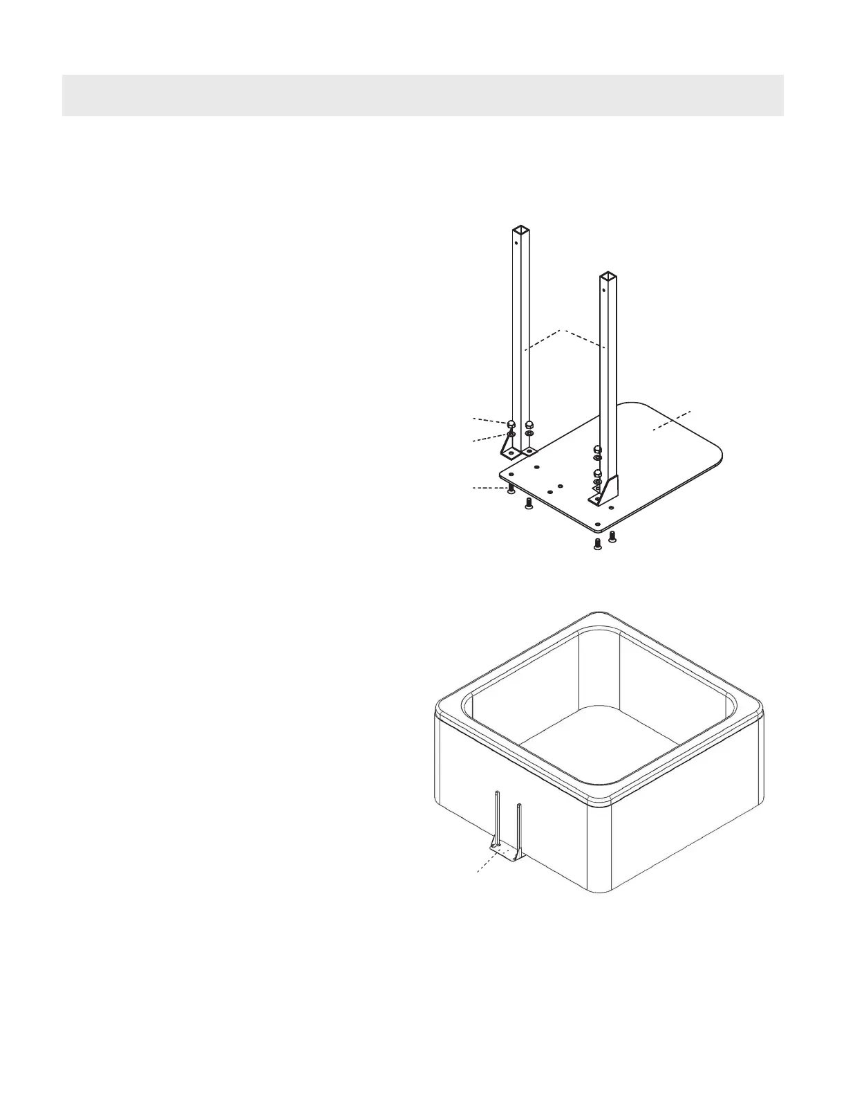 2. Attach the ccGG Support Legs to the ccFF Base Plate using the ccA Round Head Bolts, the ccG Washers,