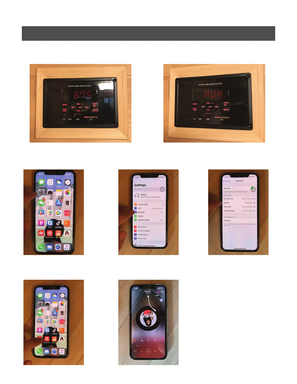 1. Press the “POWER” button on the MP3 player. Press the “MODE” button until “AUX”