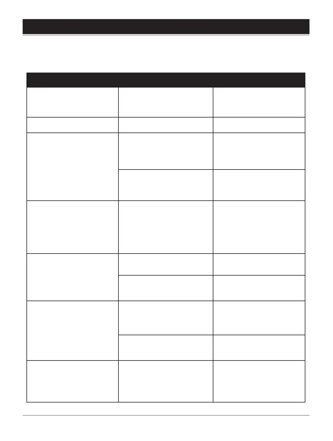The following is a troubling shooting guide to help you solve any issues that may have with the operation of the