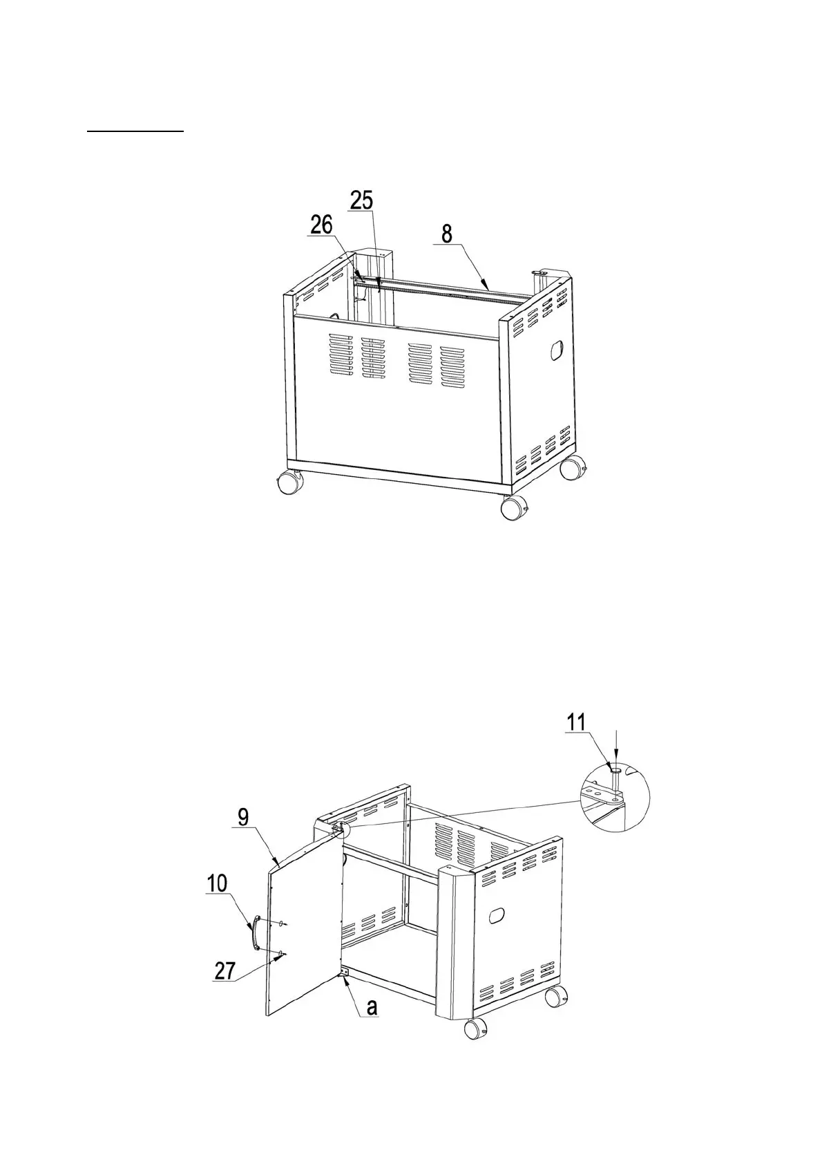 b) Using 2× M4× 5 screws (No.27) attach the door handle (No.10) to the door (No.9) as