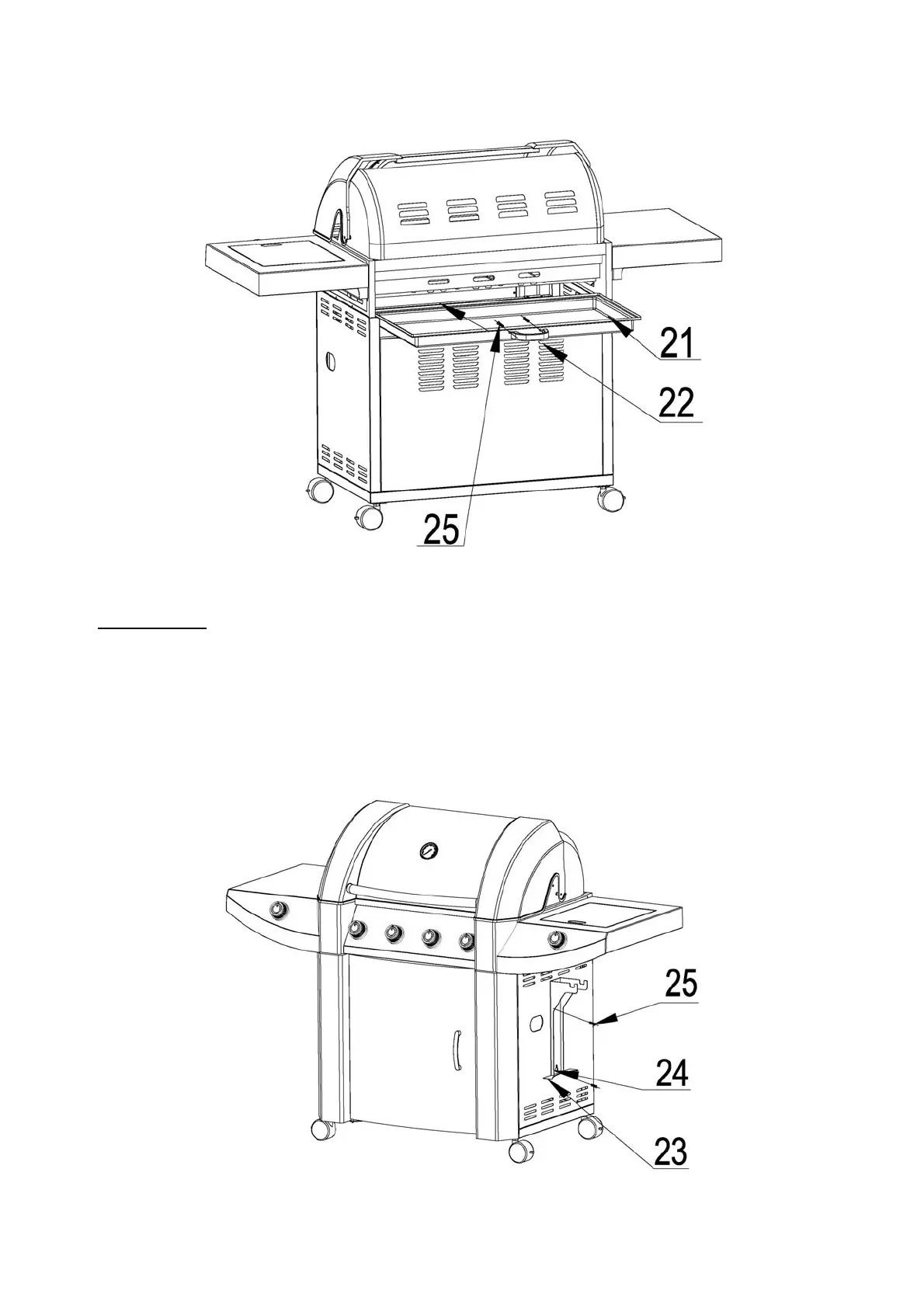 Secure the handle (No.22) to the drip tray (No.21) with 2× M6× 12 screws (No.25)