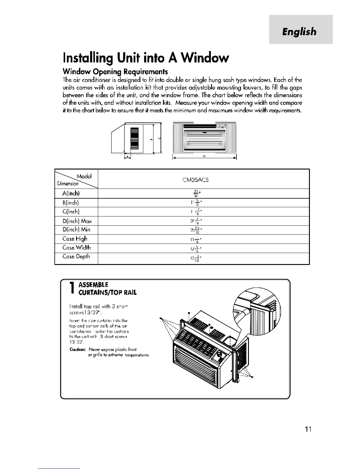 HEC CM05AC5 - Install Air Conditioner in Window; Install Seal Gasket and Sash Lock
