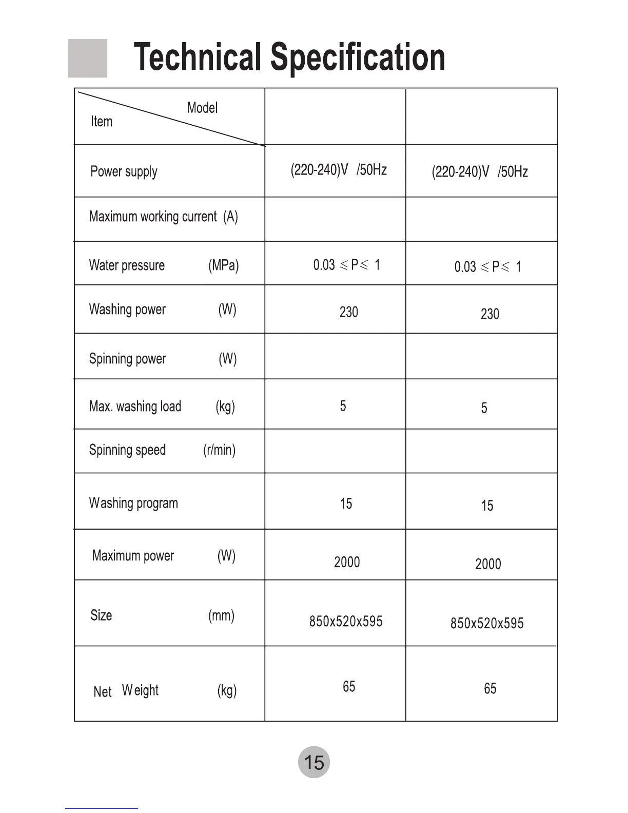 HEC HEC1050S - Technical Specification