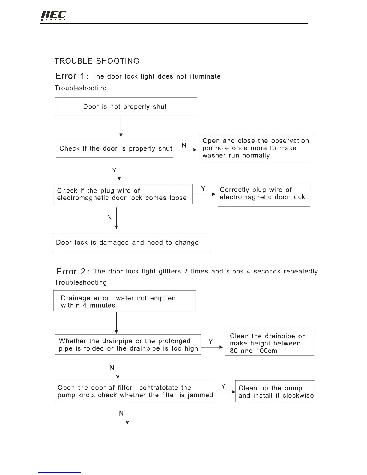 HEC HEC1050W - Error 3: Door Lock Light Flashes Three Times; Error 4: Door Lock Light Flashes Four Times