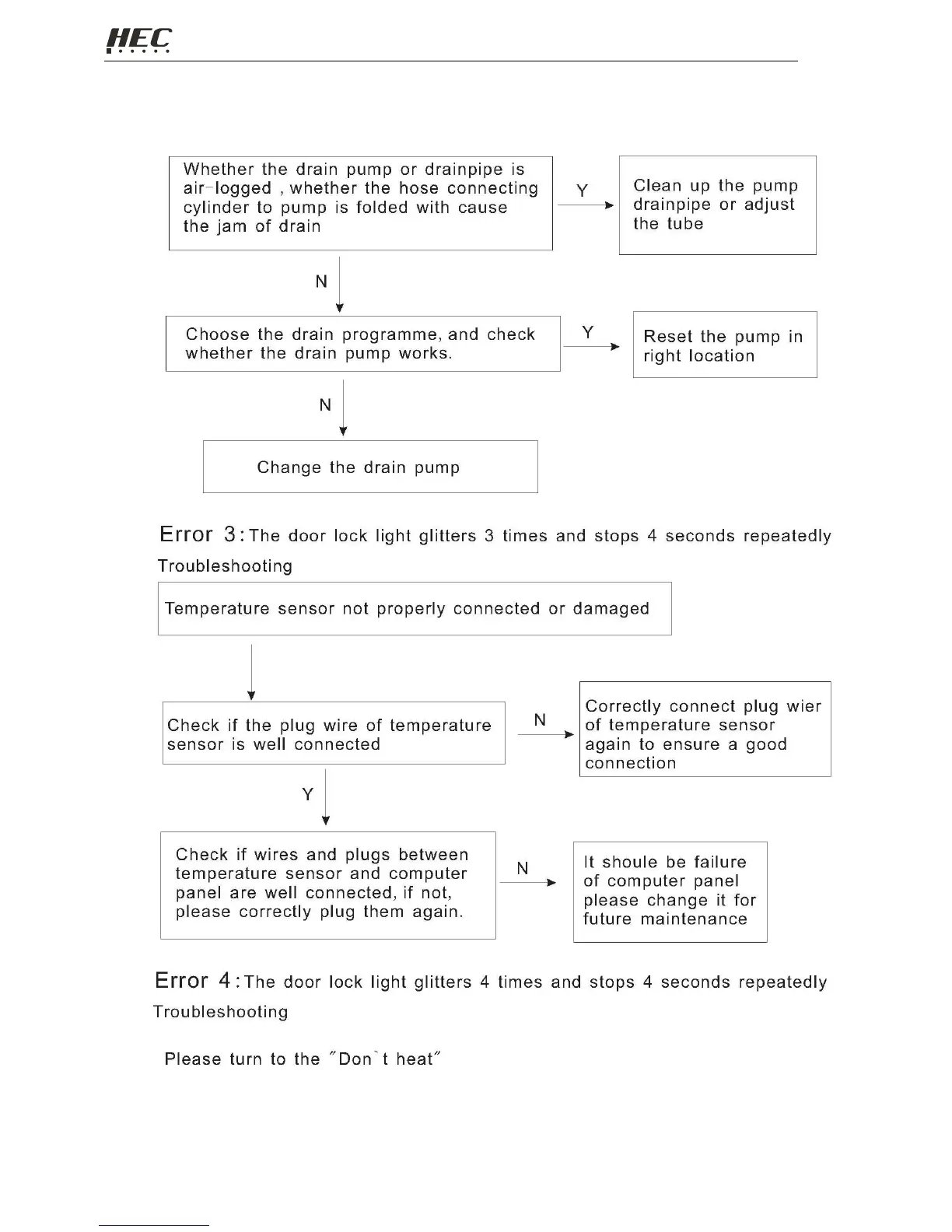 HEC HEC1050W - Error 5: Door Lock Light Flashes Five Times; Error 6: Door Lock Light Flashes Six Times; Error 7: Door Lock Light Flashes Seven Times; Error 8: Door Lock Light Flashes Eight Times