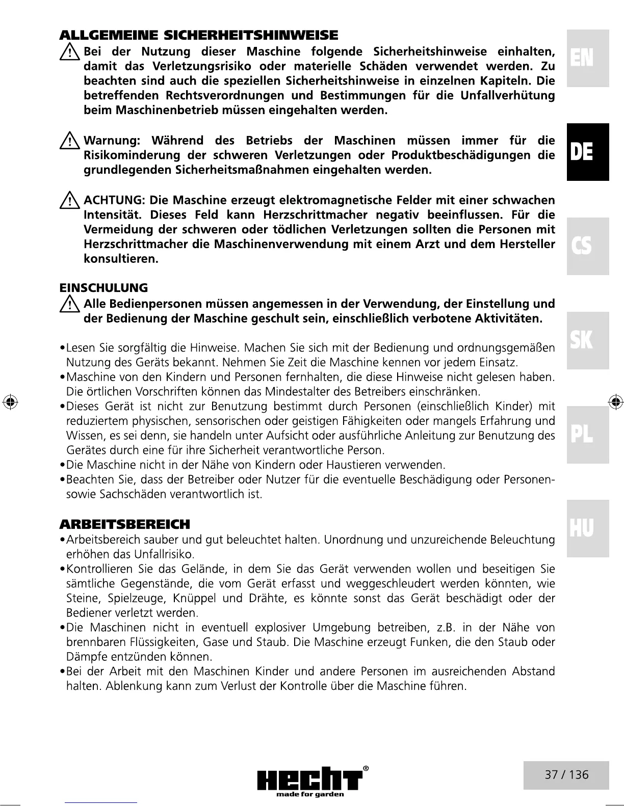 hecht 1845 - General Safety Instructions