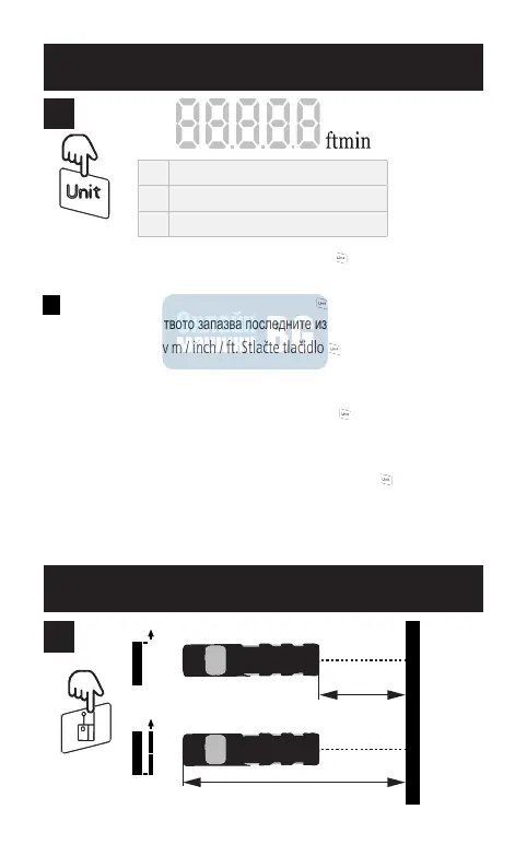 Merať je možné v m / inch / ft. Stlačte tlačidlo