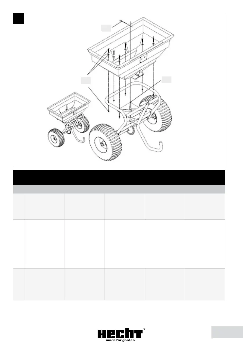 hecht 256 - Step 3: Install the Hopper; Axle Insertion into Hopper Base; Hopper Attachment to Frame; Swivel Axle Pin Installation