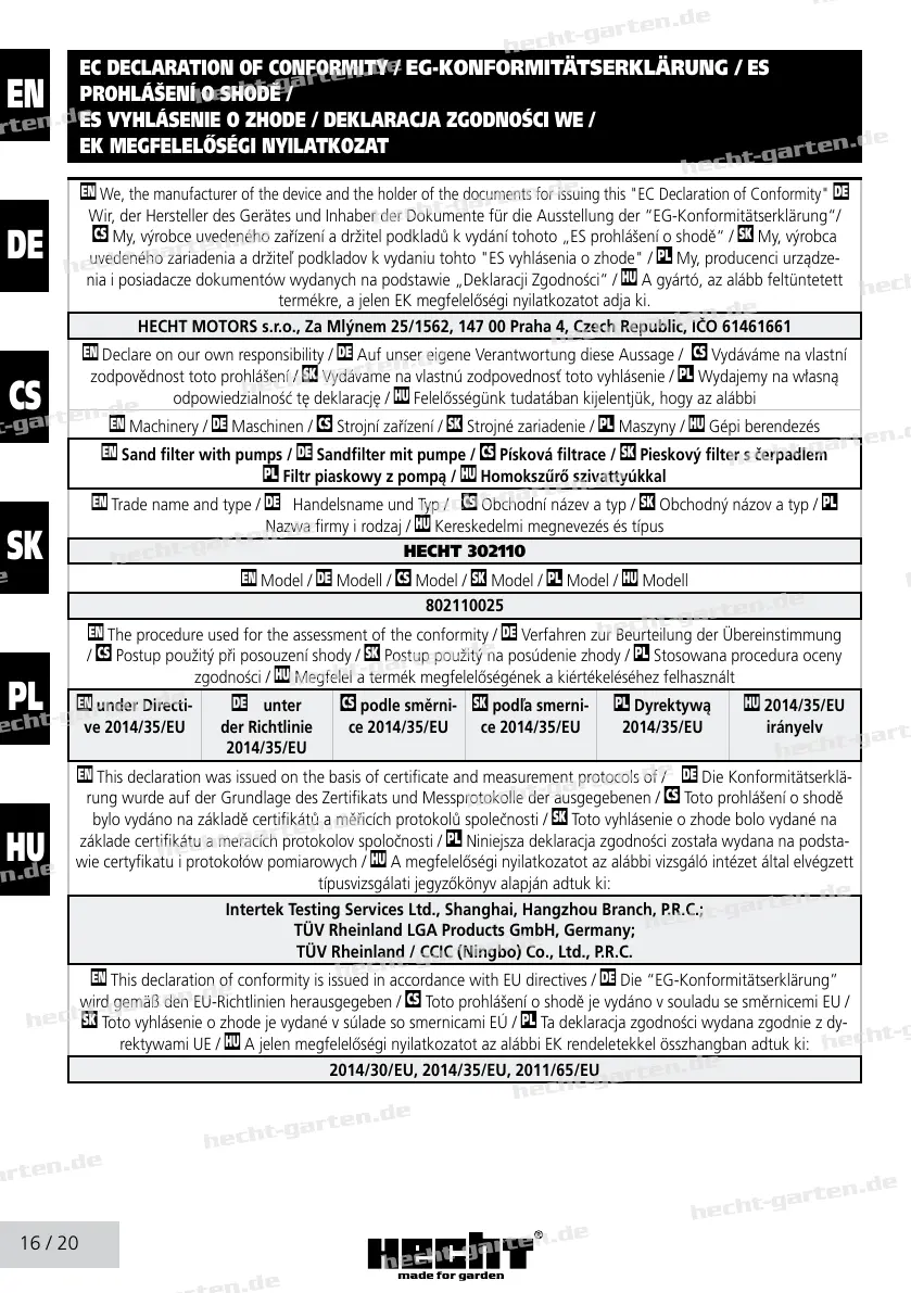 This declaration of conformity is issued in accordance with EU directives / d Die “EG-Konformitätserklärung”