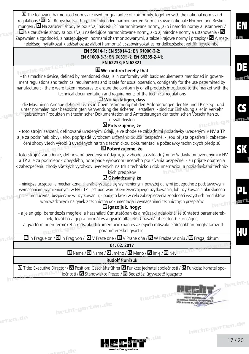 - toto strojné zariadenie, definované uvedenými údajmi, je v zhode so základnými požiadavkami uvedenými v NV