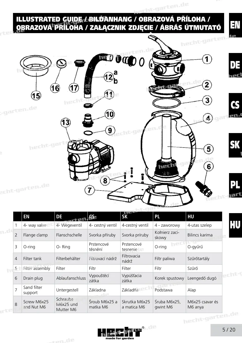 5 Filter assembly Filter Filtr Filter Filtr Szűrő
