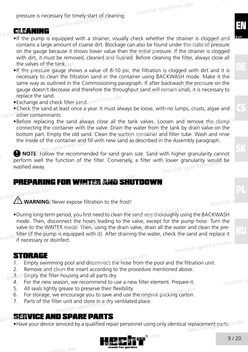 • During long-term period, you first need to clean the sand very thoroughly using the BACKWASH