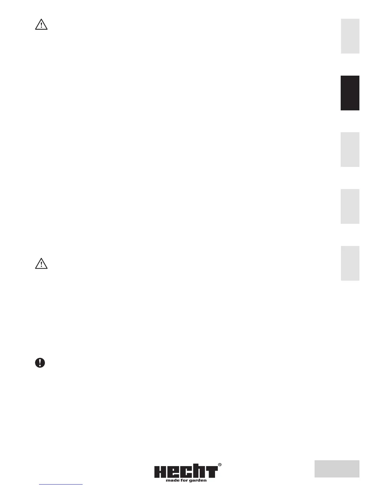• Vor dem Einschalten der Messer stellen Sie die Schnitthöhe auf die höchste Position ein.