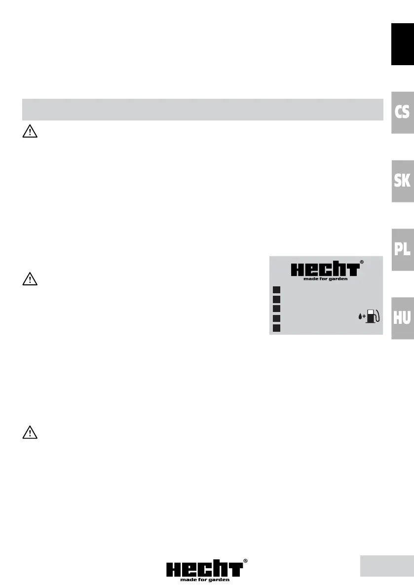 • Poor quality petrol or oil may damage sealing rings, fuel lines or the fuel tank. Do not use