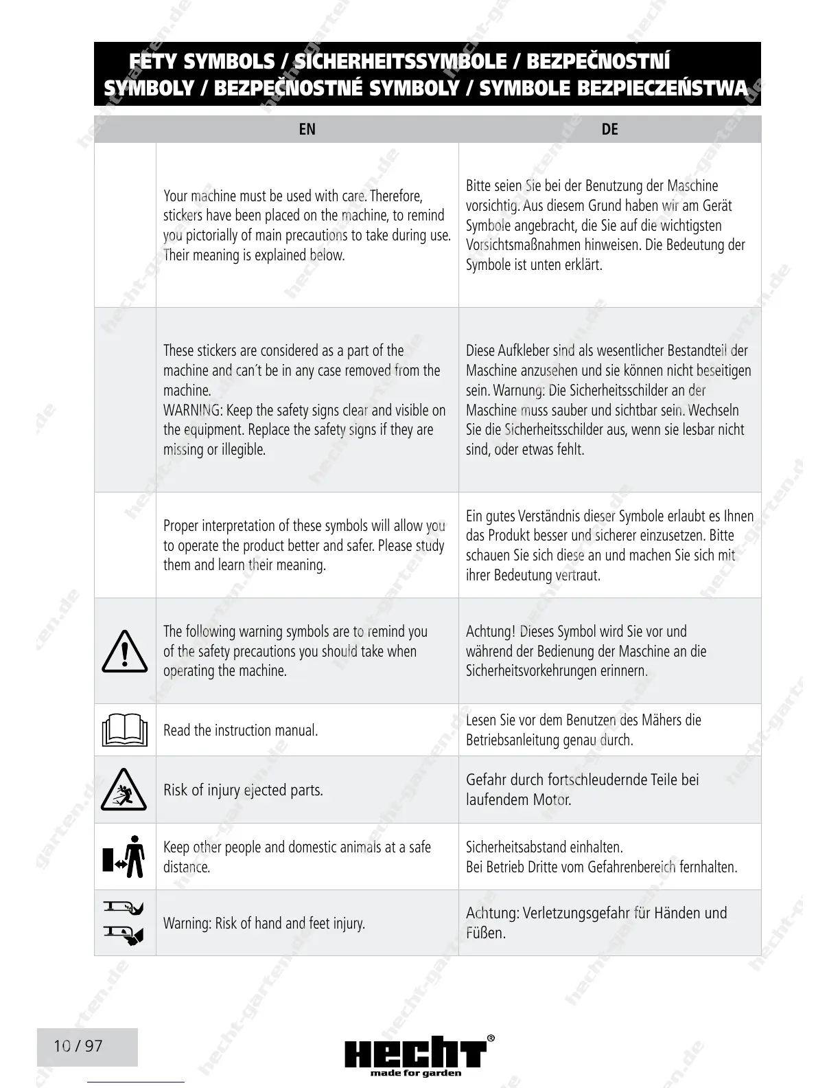 SAFETY SYMBOLS / SICHERHEITSSYMBOLE / BEzPEČNOSTNÍ