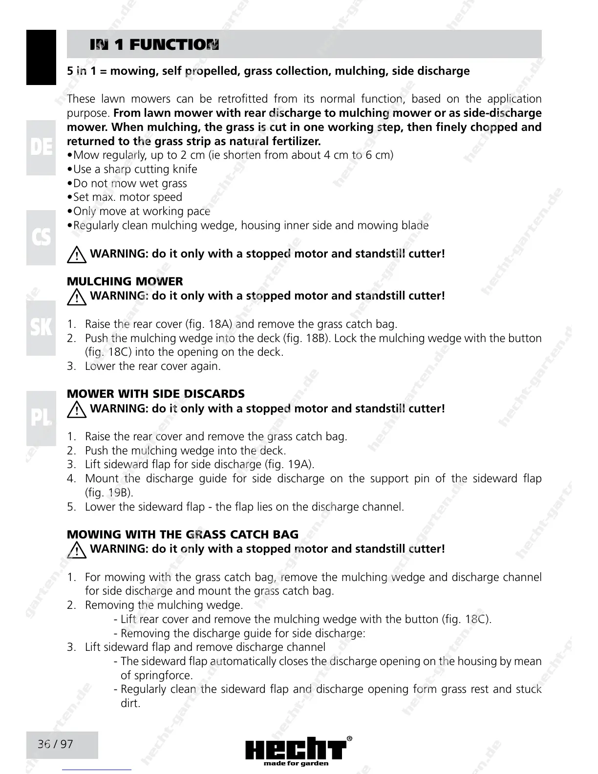 purpose. From lawn mower with rear discharge to mulching mower or as side-discharge
