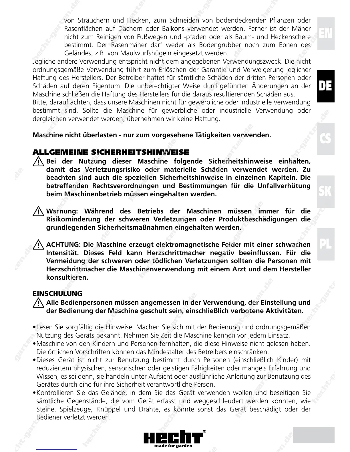 bestimmt. Der Rasenmäher darf weder als Bodengrubber noch zum Ebnen des