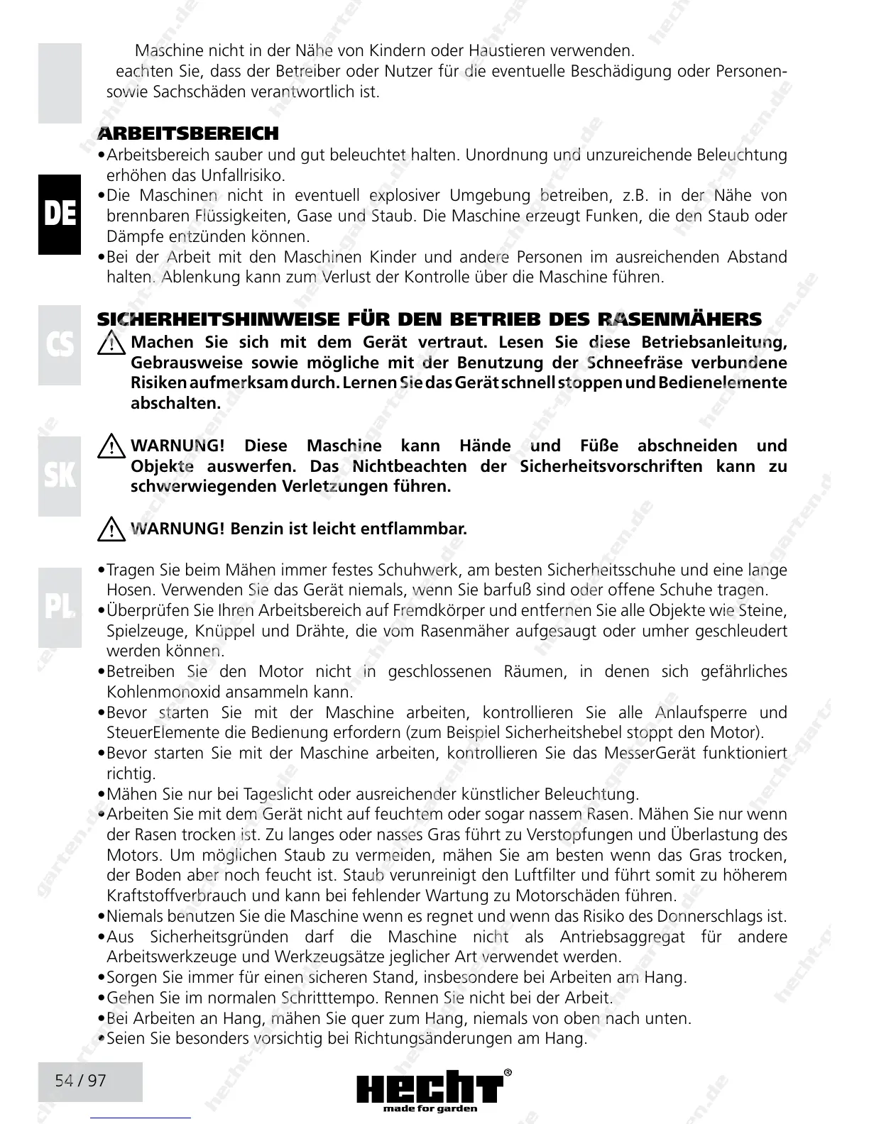 SICHERHEITSHINWEISE FÜR DEN BETRIEB DES RASENMÄHERS