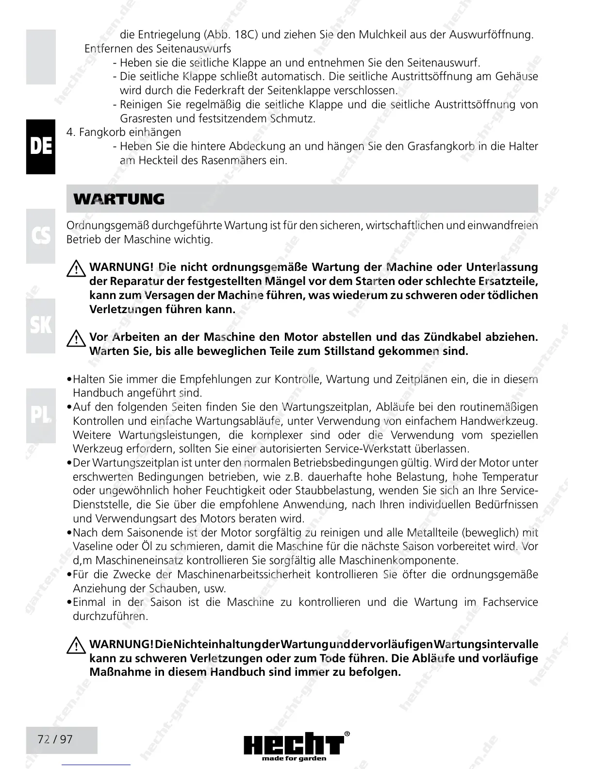 • Einmal in der Saison ist die Maschine zu kontrollieren und die Wartung im Fachservice