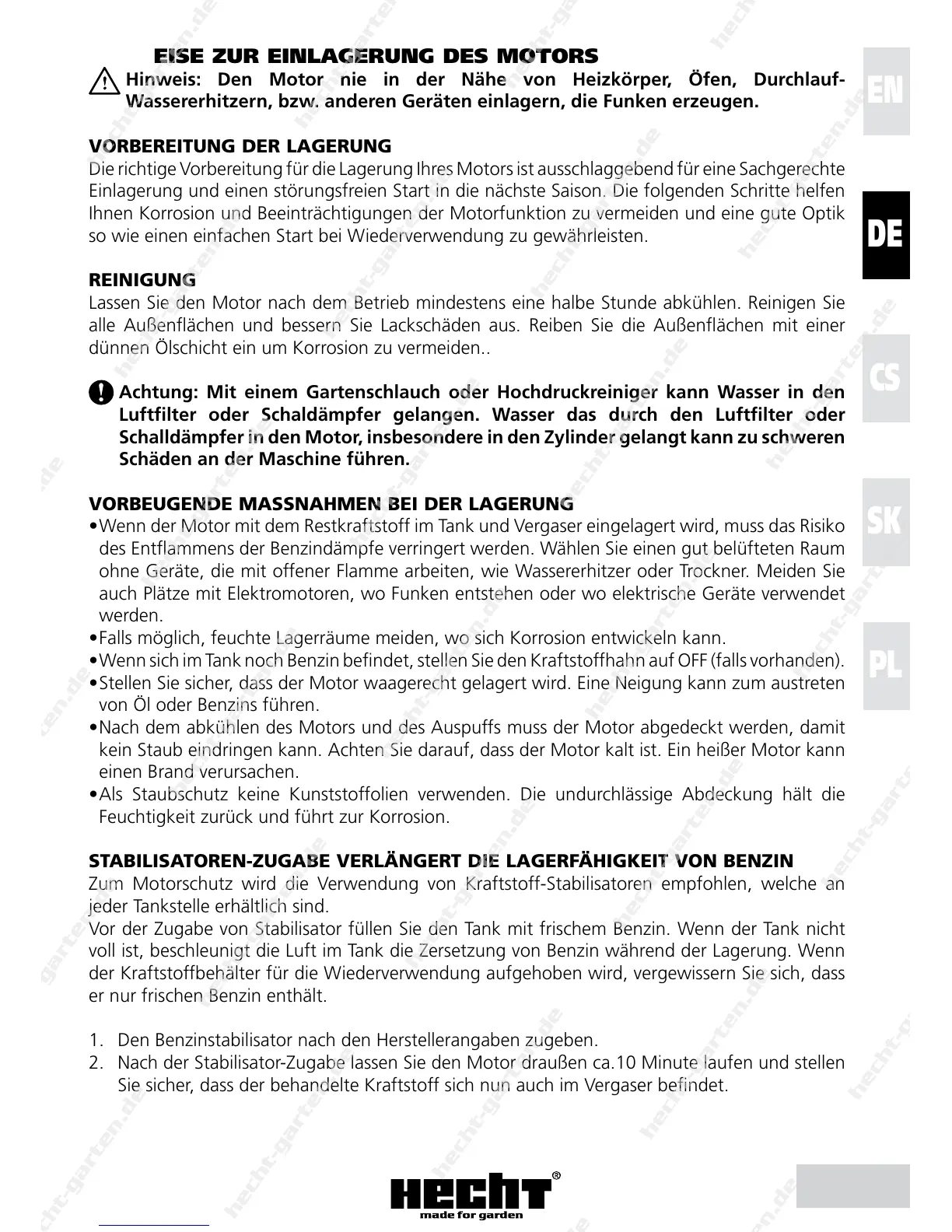Zum Motorschutz wird die Verwendung von Kraftstoff-Stabilisatoren empfohlen, welche an