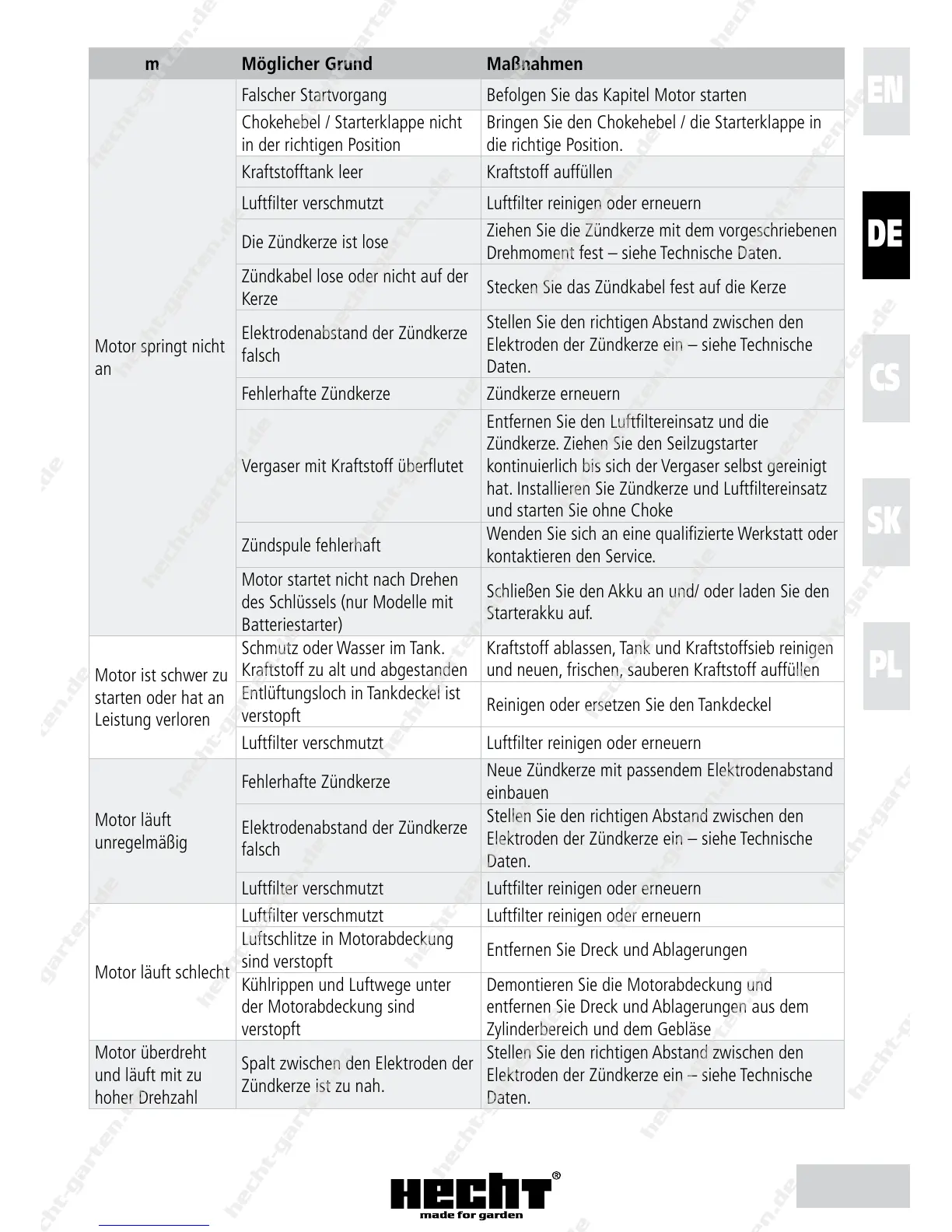 Falscher Startvorgang Befolgen Sie das Kapitel Motor starten