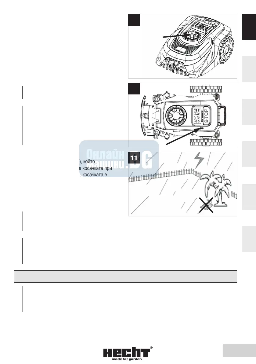 Косенето в дъжд не се препоръчва. По време на буря електронните схеми на косачката може да се