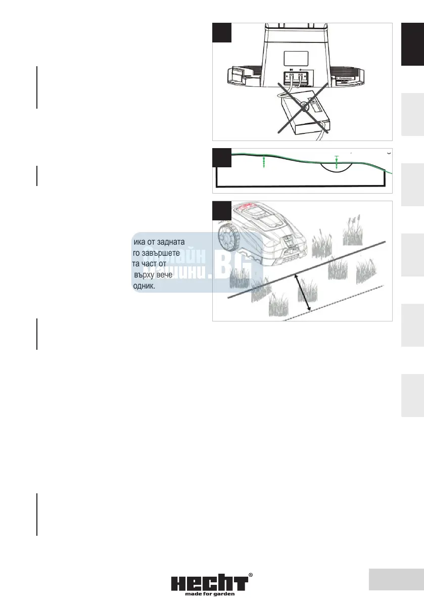 един от друг. Винаги фиксирайте дистанционния проводник и щифтовете толкова ниско, че косачката да