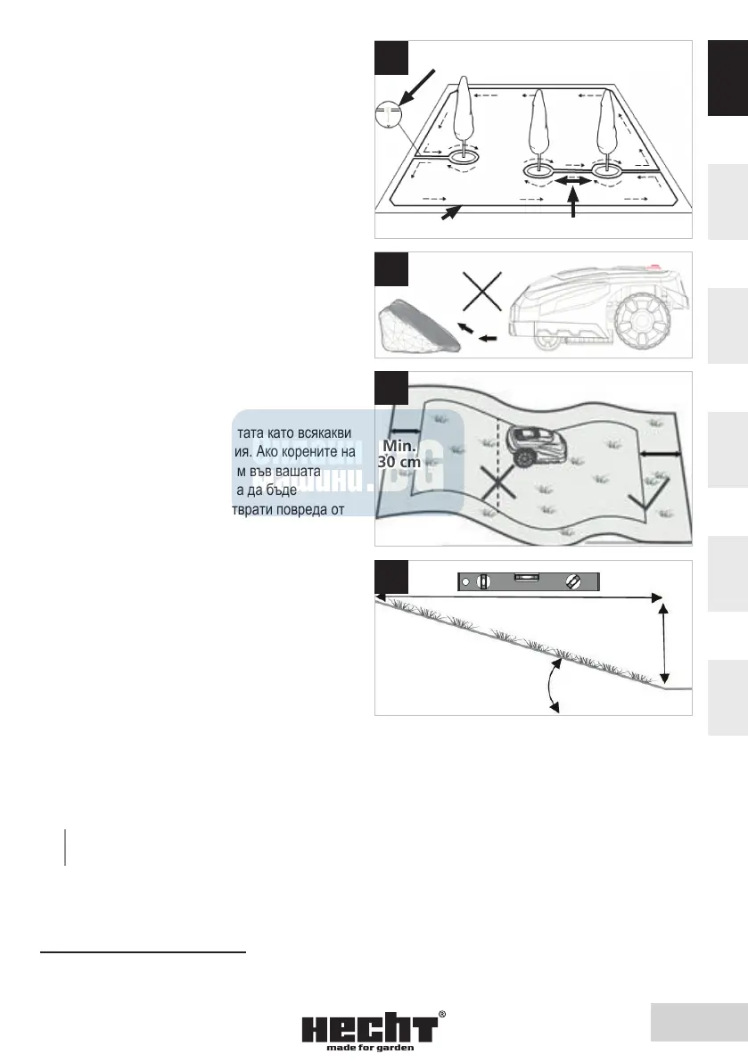 разстояние най-малко 30 cm между всякакви препятствия. Долният ограничителен проводник не трябва