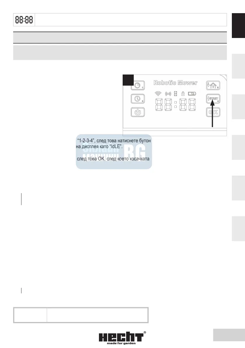 5. Натиснете бутоните с цифри “1-2-3-4”, след това натиснете бутона OK. Косачката влиза в режим
