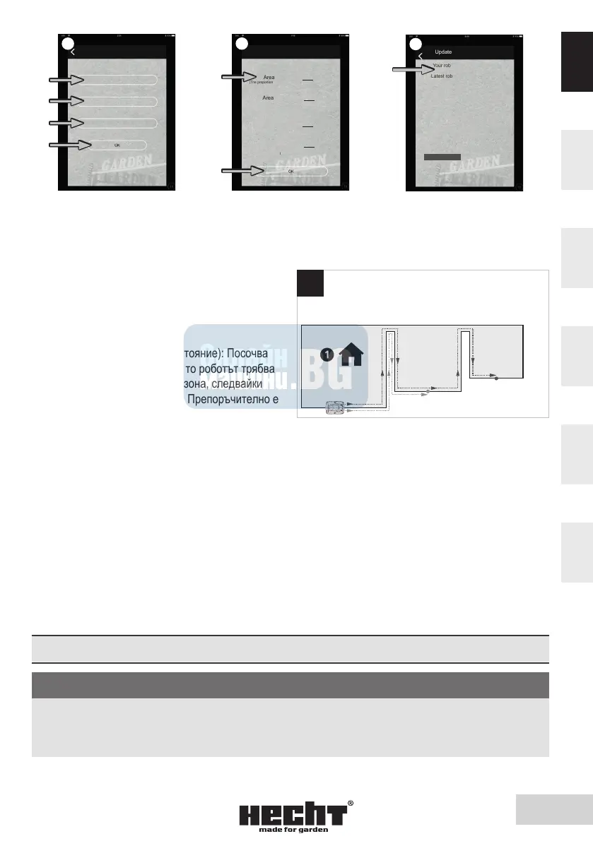 • Случайни 3 пъти, косачката робот ще се придвижи до задната част на зарядната станция, изминавайки