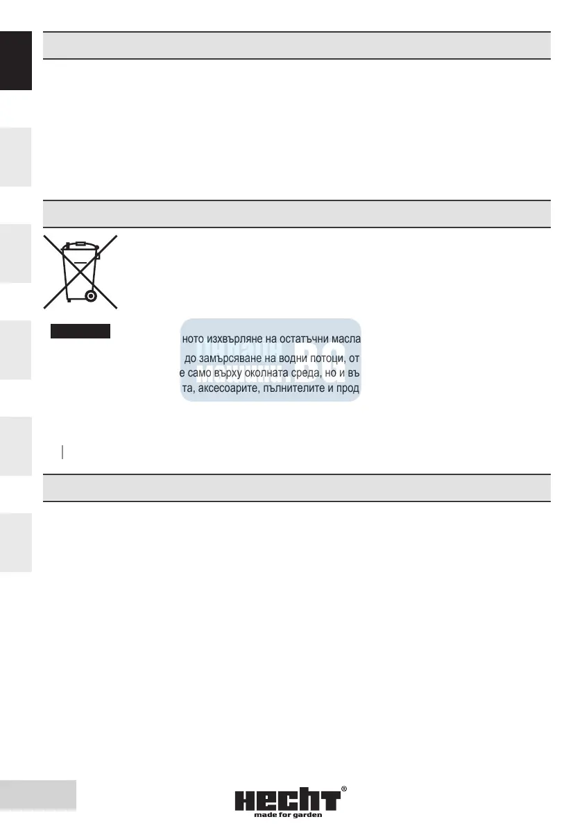 • Неправилното изхвърляне на остатъчни масла, химикали, батерии, части от продукти