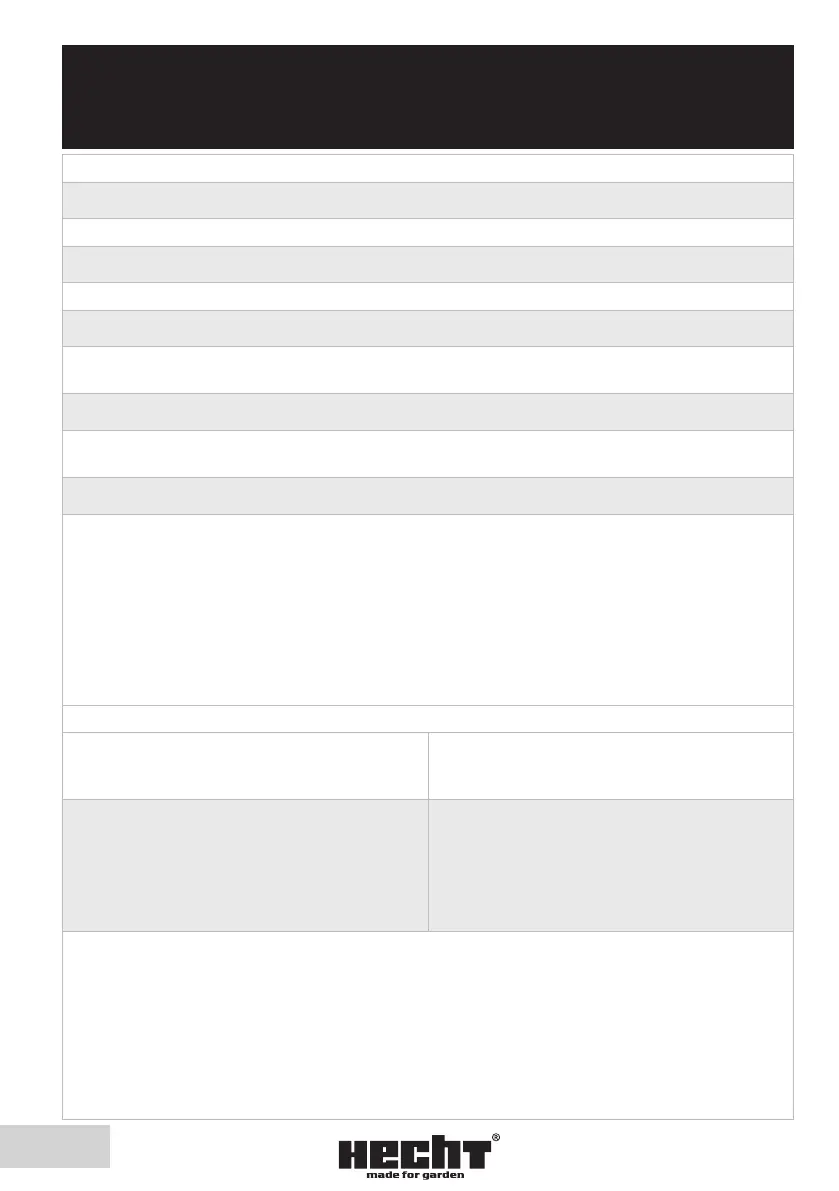 oficjalnego autoryzowanego dystrybutora firmy HECHT MOTORS i akceptuje warunki niniejszej gwarancji.