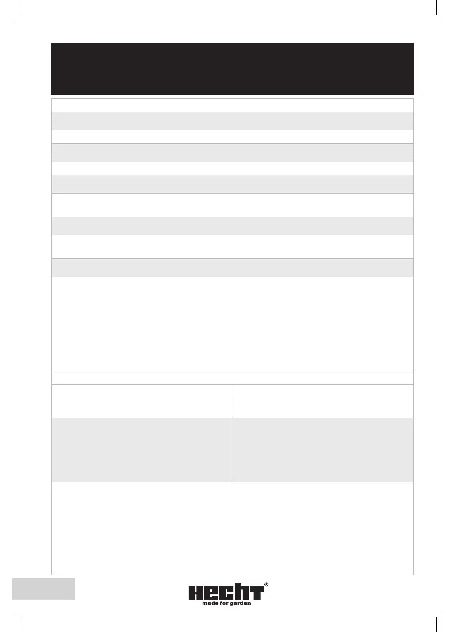 oficjalnego autoryzowanego dystrybutora firmy HECHT MOTORS i akceptuje warunki niniejszej gwarancji.