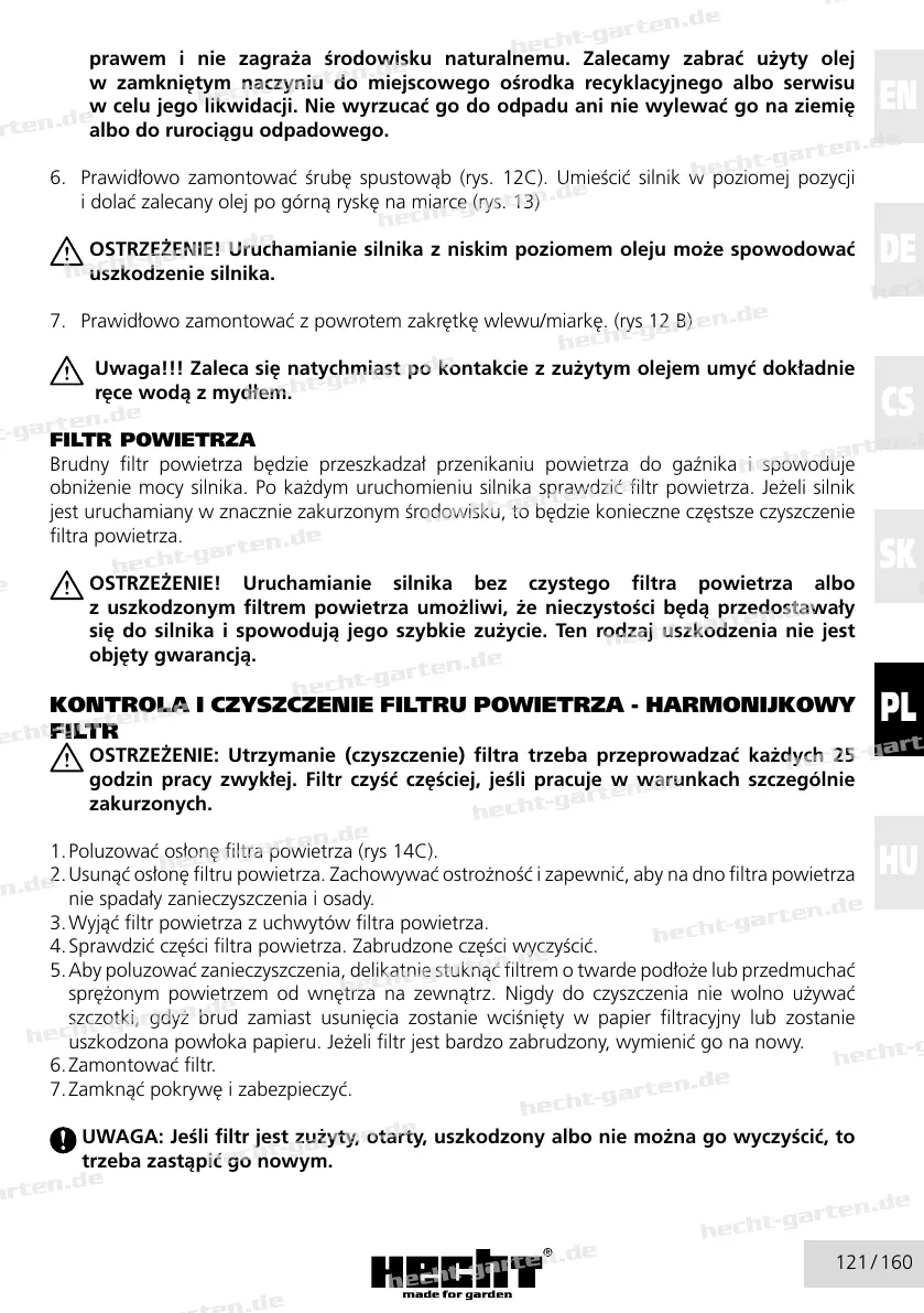 obniżenie mocy silnika. Po każdym uruchomieniu silnika sprawdzić filtr powietrza. Jeżeli silnik