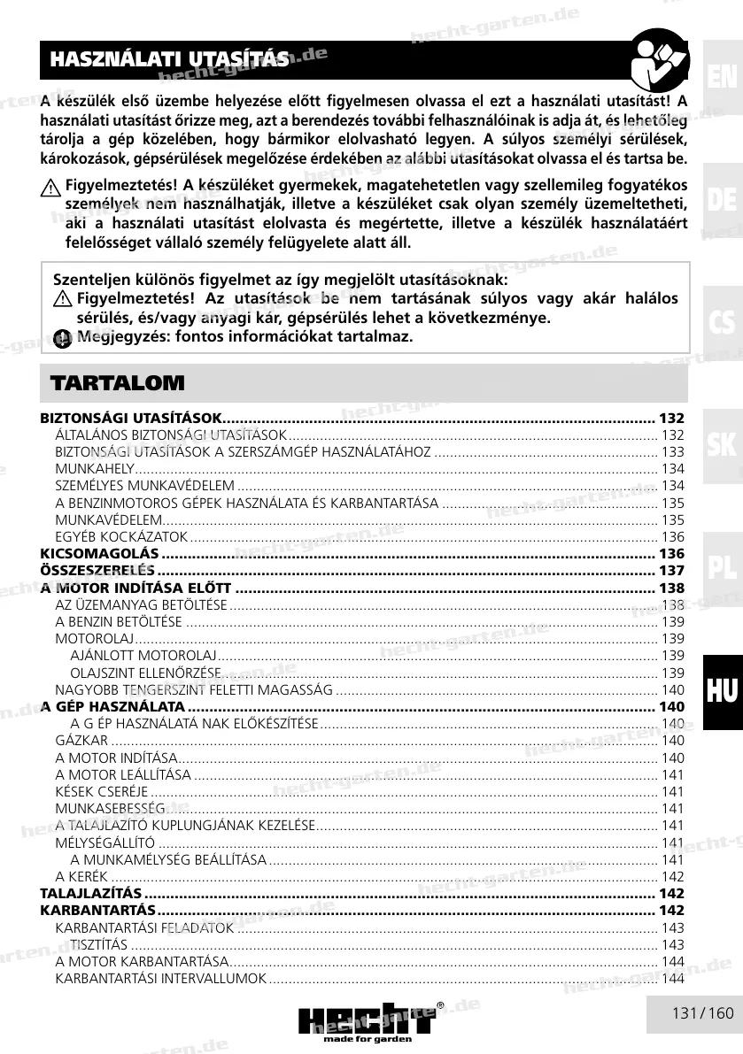 A BENZINMOTOROS GÉPEK HASZNÁLATA ÉS KARBANTARTÁSA ....................................................... 135
